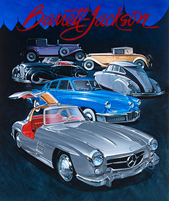 The "Tour" both in action and on display on Ocean Avenue in downtown Carmel. The few hours spent among the cars on display resulted in an exciting series of paintings. Each painting is a 16x12" acrylic on canvas and is executed in a very loose, impressionist style with bold use of color. The paintings premiered as a group of 12 at the 2013 AFAS Exhibition at the Pebble Beach Concours.